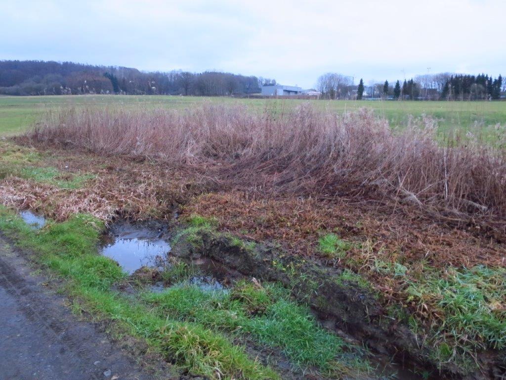 Zu nah am begrenzenden Feldweg gelegen, wird die Helokrene nicht selten durch den landwirtschaftlichen Schwerlastverkehr in Mitleidenschaft gezogen; Blick n. O; (Foto: HR 21.12.2019)