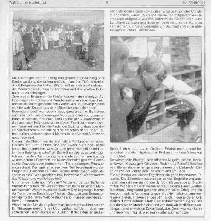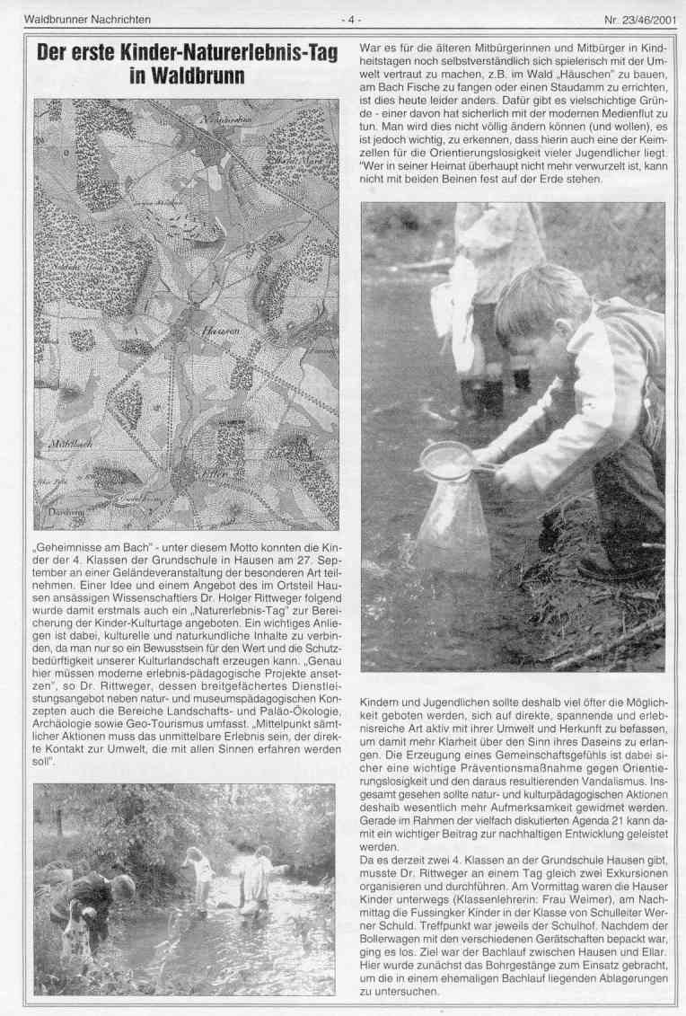 Der Natur auf der Spur "Unterricht am Bach" Ein Projekt der Grundschule Hausen und des MObilen LAndschafts MUseums im Rahmen der Kinder-Kulturtage 2001 in Waldbrunn-Hausen