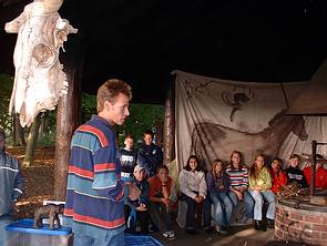 Nassausiche Neue Presse vom 16.11.2005 Reise in die Steinzeit Hadamar. Geschichte hautnah erlebten die Schüler der 6aR und 6bR der Fürst-Johann-Ludwig-Schule in Hadamar beim Erlebnistag "Steinzeit". Dr. Holger Rittweger vom Mobilen Landschaftsmuseum zeigte, wie Geschichtsdaten lebendig und anschaulich durch Mitmachen und Ausprobieren vermittelt werden können. In einer mit steinzeitlichen Höhlenmalereien nachempfundenen Athmosphäre im Wald bei Niederhadamar konnten die Schüler mit ihren Klassenlehrerinnen Monika Keller und Angela Roth den Alltag unserer Vorfahren vor 30 000 Jahren unmittelbar erleben. Im Rahmen des Geschichtsunterrichts sowie des fächerübergreifenden Projekts "Steinzeit" in Deutsch und Kunst in der Klasse 6bR hatten die Schüler zuvor schon Einblicke gewonnen, mit welchen Problemen sich die Menschen der Steinzeit täglich auseinander setzen mussten. Hier erfuhren sie nun, wie man ein Feuer ohne Feuerzeug und Streichhölzer entfacht und durften es sogar selbst ausprobieren. Auch die Herstellung von steinzeitlichen Werkzeugen und Jagdwaffen wurde anschaulich demonstriert. Schließlich durfte mit Pfeil und Bogen sowie einem Speer ein Wollhaarnashorn "erlegt" werden. Besonders beeindruckt waren die Schüler von dem "Band der Zeit", das sich von der Gegenwart bis ins Jahr 30 000 v. Christus spannte. Durch Legen von Schildern, Tier- und Menschenfiguren entlang des Maßbandes wurde ihnen schnell klar, dass es von heute bis ins Mittelalter nur ein Katzensprung ist, bis zur Entstehung der Erde man dagegen bis zum Äquator laufen müsste. Hinweise auf steinzeitliche Funde in der näheren Umgebung und die geologische Veränderung der Heimat rundeten das Erlernen von Geschichtsdaten ab. (wt) |