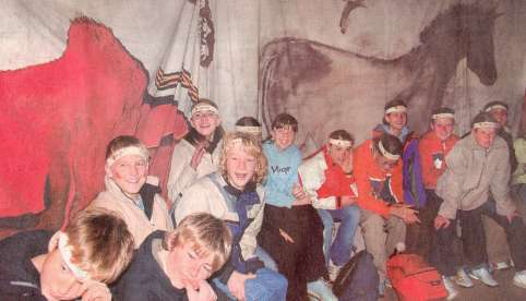 in einer "Steinzeithöhle" statt. Er versteht es vortrefflich,