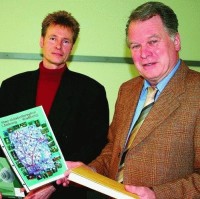 Der neue Kreisarchäologe Dr. Holger Rittweger (links) wartet mit einer Reihe von Veröffentlichungen auf. Bei seiner Vorstellung durch Landrat Dr. Manfred Fluck stellte er eine Kartierung des Kreises als Geo-Erlebnisregion vor.