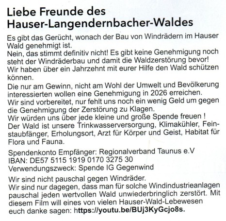 *********************************************************************************** _________________ s. schließlich auch: Presse >>> http://hl-journal.de/ig-gegenwind-hausen-kaempft-gegen-die-windkraft/ >>> http://hl-journal.de/ig-in-hausen-gegen-windkraft-aus-dem-dornroeschenschlaf-erwachen/
