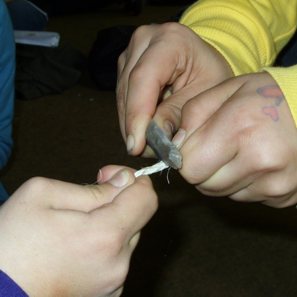 Steinzeitjäger entzündet und zum Abschluss kann jede(r) ein Amulett aus