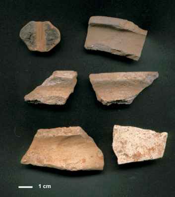beiden unteren Stücke tragen Reste einer Bemalung nach sog. "Pingsdorfer