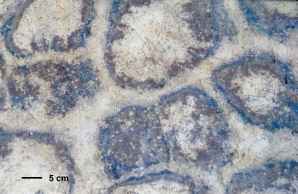 Frostmusterboden im horizontalen Anschnitt Dieser selten schöne und bislang einmalige Befund gab Anlass zu der Überlegung, dieses landschafts- und klimageschichtliche Dokument dauerhaft als Lackprofil zu konservieren, um es einer musealen Nutzung zuführen zu können. Die dazu notwendigen finanziellen Mittel wurden dankenswerterweise vom Landkreis Limburg-Weilburg zu Verfügung gestellt, der nun über ein in Europa wohl einzigartiges Ausstellungsobjekt verfügt. Vom wissenschaftlichen und gleichsam ästhetischen Wert dieser Exponate konnten sich erstmals die Besucher der Tagung "Die Alte Stadt" im April 2002 in der Josef-Kohlmaier-Halle überzeugen. Einer der Lackabgüsse soll zukünftig das neu entstandene Bahnhofsgebäude schmücken und kann so auch dazu dienen, Durchreisende auf die landschaftlichen Attraktionen in der Region aufmerksam zu machen.