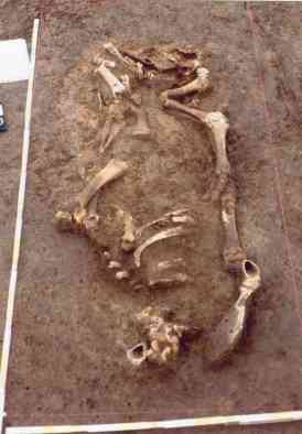 Skelett eines kleinen Rindes entdeckt. Aufgrund der Bodenentwicklung war